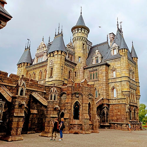 Перед входом в замок вас встретят мифологические крылатые существа Грифо́ны с туловищем льва и головой орла. Изящные башни венчают готические шпили, крыши которых покрыты натуральным камнем. Статуи героев старинных легенд украшают комплекс. Мы приглашаем прогуляться по заснеженному парку, насладиться великолепными видами, услышать историю и легенды его создания и сделать уникальные фотографии европейского средневековья в волжской глубинке.